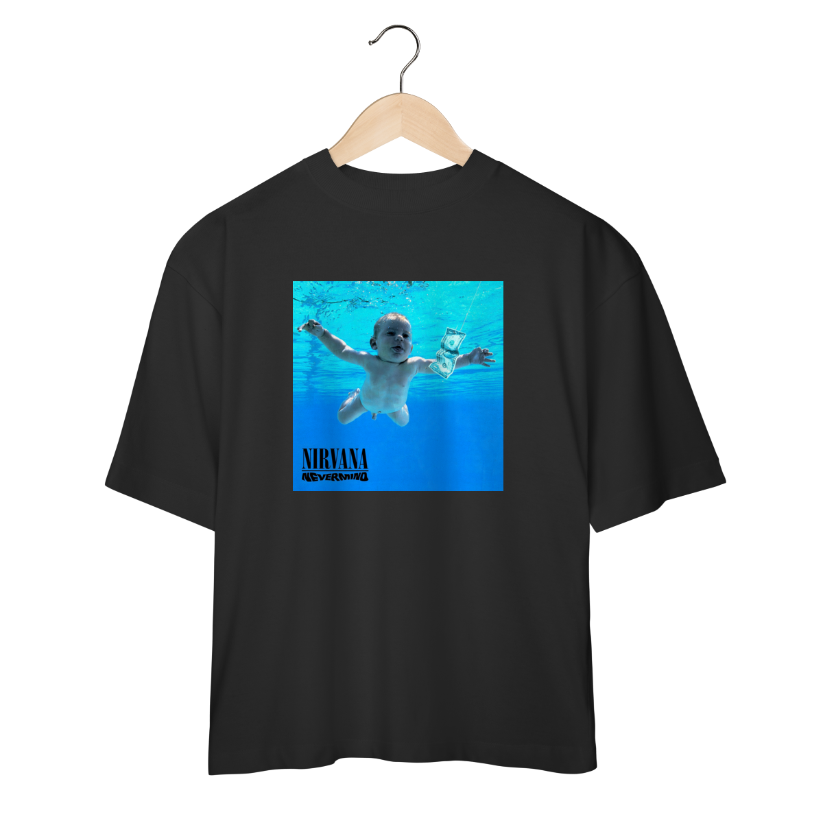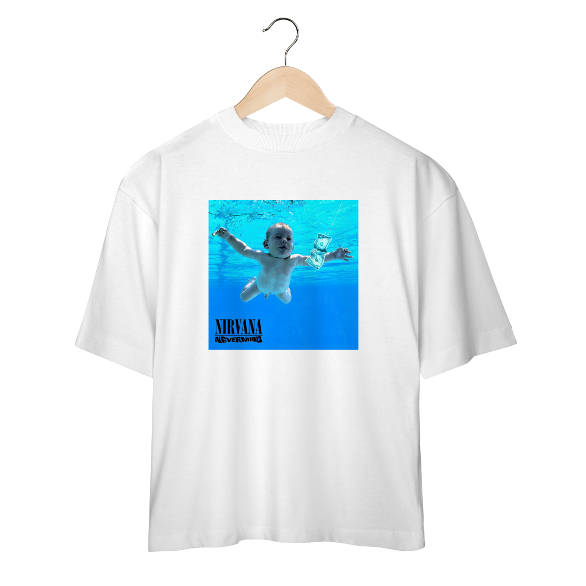 O espírito do grunge renasce com a arte icônica de Nevermind, o álbum que redefiniu a música dos anos 90. Uma crítica feroz à sociedade de consumo — e um símbolo eterno de rebeldia. Esta peça celebra o som cru e visceral do Nirvana, o disco que levou o underground ao topo e fez do inconformismo uma forma de liberdade sonora e cultural.