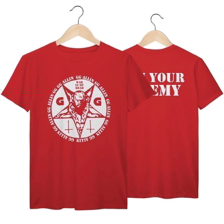 GG Allin desafiou todos os limites da música e da performance ao vivo, transformando o palco em um campo de guerra contra convenções e hipocrisias. Esta camiseta traz a frase “I’m Your Enemy”, sintetizando sua postura crua, violenta e intransigente diante do mundo. Uma peça que homenageia um dos nomes mais controversos do punk, lembrando que sua arte não buscava aceitação, mas provocar, chocar e expor verdades incômodas. Perfeita para quem enxerga rebeldia como forma de expressão extrema.